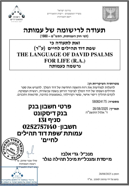 העמותה פועלת כגוף ללא מטרות רווח, מתוך אינטרס אותנטי, נקי ואמיתי: לאחד לבבות, לחזק זהות ולהביא ריפוי. אין כאן אג’נדה כלכלית — יש שליחות אנושית, רוחנית וחברתית.